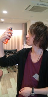 朝、髪に簡単寝癖直し。